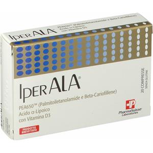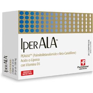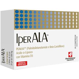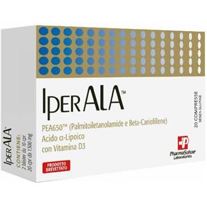 P PharmaSuisse Laboratories IperAla® Integratore Alimentare antiossidante per la funzionalità del sistema nervoso - A base di PEA650™, Acido Alfa-Lipoico e Vitamina D3-20 compresse
