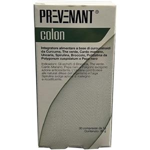 FARMACEUTICA VENETA Srl PREVENANT Colon - Integratore alimentare con curcuminoidi, the verde, cardo mariano e spirulina - 30 Compresse
