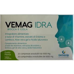 VEMAG Idra Bocca & Gola Menta - Integratore Alimentare con Erisimo, Aloe Vera e Acido Ialuronico - 20 Compresse