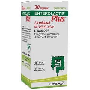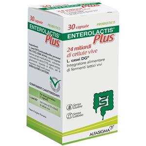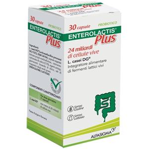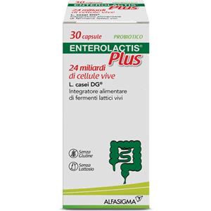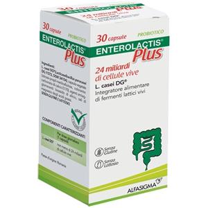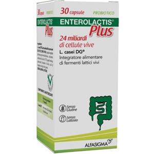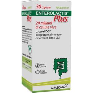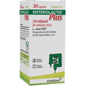 ALFASIGMA SpA Enterolactis Plus Capsule, Integratore Alimentare con Fermenti lattici, probiotici L,Casei DG, 24 Miliardi Cellule Vive, Senza Glutine e Lattosio, 30 Capsule