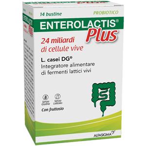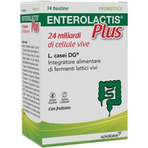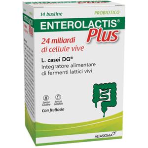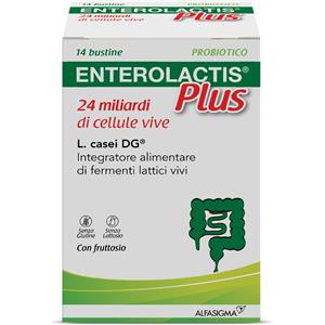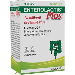 ALFASIGMA SpA Enterolactis Plus Bustine, Integratore Alimentare con Fermenti lattici, probiotici L,Casei DG, 24 Miliardi Cellule Vive, Con Fruttosio, Senza Glutine e Lattosio, 14 Bustine da Sciogliere in Acqua