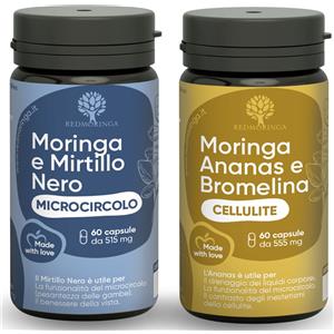 RedMoringa Trattamento Anticellulite Drenante - 120 Capsule con Moringa, Ananas e Mirtillo Nero per Combattere Cellulite e Gonfiore