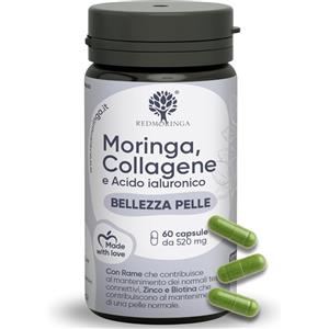 RedMoringa Formula ANTIRUGHE Avanzata con Collagene Idrolizzato e Acido Ialuronico - 60 Capsule per Pelle e Articolazioni