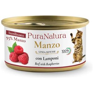 Dalla Grana Pura Natura Mousse per Gatti Sterilizzati - Manzo e Lamponi, 85g, 100% Grain Free