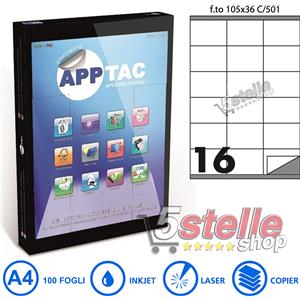 APPTAC Etichette Autoadesive A4 - 100 Fogli, 105x36 mm, Adesivo Acrilico Permanente, Compatibili con Stampanti Inkjet e Laser