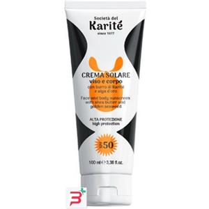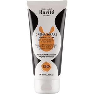 Soc. del Karite Crema Solare Viso e Corpo SPF 50 100ml - Idratante con Burro di Karité e Alga d'Oro, Effetto Dorato Abbronzato