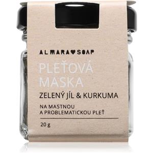Almara Soap Maschera Viso Purificante - Trattamento Antibatterico con Argilla Verde, Curcuma e Sandalo per Pelle Grassa e Normale