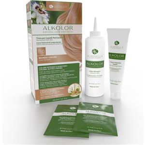 Alkemilla Alkolor Tinta Permanente 8.0 Biondo Chiaro 155 ml - Nutriente e Idratante con Olio di Argan e Estratti Vegetali