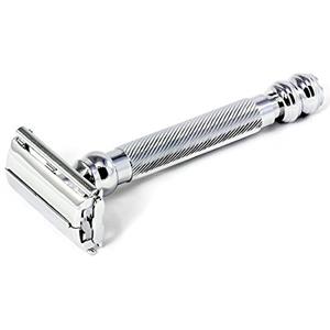 The Goodfellas' Smile Rasoio di Sicurezza Italico Guardia Aperta - Manico in Acciaio Inox e Testina in Zamak Satinato