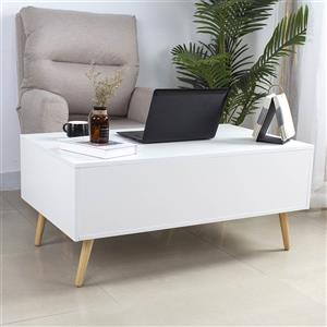 BAKAJI Tavolino Soggiorno Moderno Bianco con Piano Rialzabile e Contenitore Interno - 100x60x45 cm
