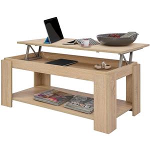BAKAJI Tavolino da caffè Soggiorno Apribile con Rialzo e Contenitore in Legno Melaminico - Design Moderno 100 x 50 x 43 cm (Beige)