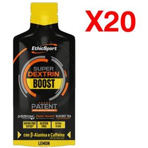 EthicSport Super Dextrin Boost - Gel Energetico al Limone con Beta-Alanina e Caffeina, Confezione da 20 x 30 ml