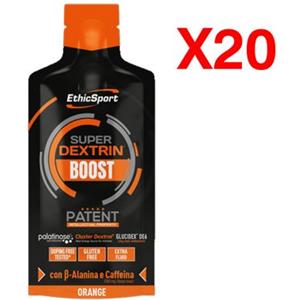 EthicSport Super Dextrin Boost - Energetico in gel con Beta-Alanina e Caffeina, Gusto Arancio, Confezione da 20 x 30 ml
