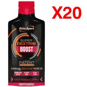 EthicSport Super Dextrin Boost - Gel Energetico Frutti Esotici con Caffeina e Beta-Alanina - Confezione da 20 x 30 ml