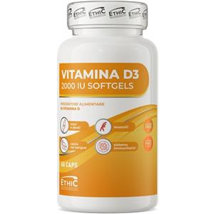 EthicSport Vitamina D3 2000 UI - 60 Capsule Softgel per Ossa Forti e Sistema Immunitario