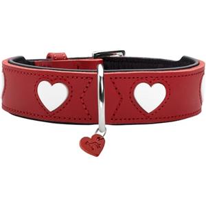 Hunter Collare Love per Cani, Rosso/Nero in Pelle Morbida, Taglia 60 (47-54 cm), Design con Cuori Cuciti, Realizzato a Mano