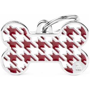 MyFamily Medaglietta Cane Osso Grande Pied De Poule Rosso con Incisione Personalizzata