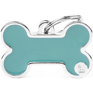 My Family Medaglietta Basic Handmade Azzurra per Cani - Forma di Osso, Large 38 mm x 24 mm, Personalizzabile