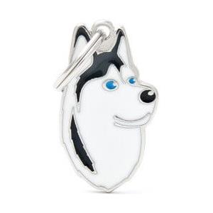 My Family Medaglietta Personalizzata per Cani Husky Bianco e Nero - Incisione Nome e Telefono