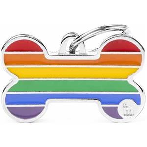 MyFamily Medaglietta Personalizzabile per Cani e Gatti a Forma di Osso Rainbow - Multicolore, Dimensioni 3,8 x 2,4 cm