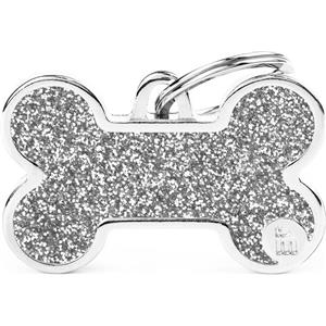 MyFamily Medaglietta Shine per Cani XL Personalizzabile a Forma di Osso Glitter Grigio