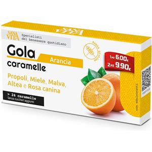 Paladin Pharma Sanavita Gola Arancia - 24 Caramelle con Propoli, Malva, Altea e Rosa Canina, Senza Glutine