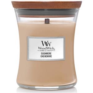 WoodWick Cashmere Candela Profumata Clessidra Media 275 g - Fragranza Legnosa con Note di Legno di Sandalo, Fava Tonka e Mela Cotogna