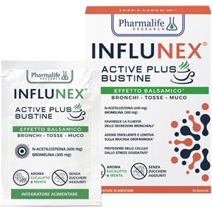 PHARMALIFE RESEARCH Influnex Active Plus Balsamico - Integratore alimentare in 14 bustine con N-acetilcisteina e Bromelina
