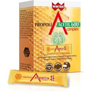Winter Propoli Acetil 600 Complex - Integratore Alimentare al Limone con N-acetilcisteina, Propoli, Malva, Vitamina C e Zinco - 12 Bustine