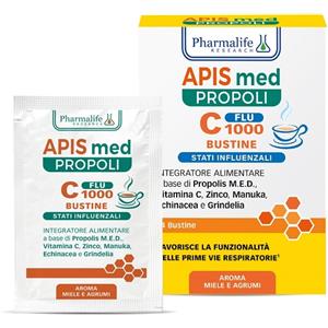 PHARMALIFE RESEARCH Apis med Propoli C Flu 1000 mg - Integratore Alimentare in 14 Bustine con Propoli, Manuka, Echinacea e Vitamina C