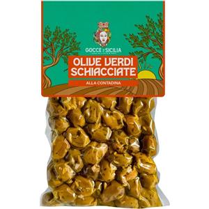 Gocce di Sicilia Olive Verdi Schiacciate Nocellara Etnea con Aromi Naturali e Peperoncino - 300g