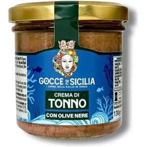 Gocce di Sicilia Crema di Tonno con Olive Nere 180 g - Perfetta per Antipasti e Condimenti