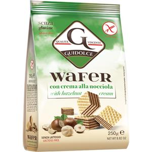GUIDOLCE Wafer Gusto Nocciola 250g - Senza Glutine, Farciti con Crema alla Nocciola