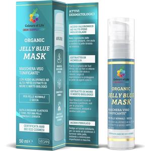 Optima Naturals Jelly Blue Organic Mask - Maschera Viso Tonificante Idratante e Anti-Age per Pelle Normale e Secca, 50 ml