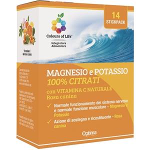Optima Colours Of Life Magnesio e Potassio 100% Citrati con Vitamina C Naturale - 14 Stickpack