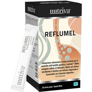 Nutriva Reflumel - Integratore Alimentare con Melo Cotogno, Miele di Manuka, Amla, Malva, Camomilla e Acacia - 20 Stick Pack da 10ml