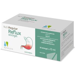 NUTRILEYA NutriRegular Reflux - 20 Stickgel gusto Menta per Sollievo dal Reflusso e Acidità con Alginati, Malva, Aloe e Condroitina - Senza Zucchero e Glutine