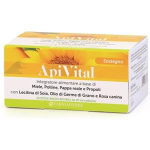 Farmaderbe Apivital - Integratore Alimentare 15 Stick Pack da 20ml con Miele, Polline, Propoli e Pappa Reale