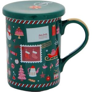 Neavita Infusiera Verde Natale 340 ml - Porcellana con Filtro in Acciaio e Coperchio Ceramico