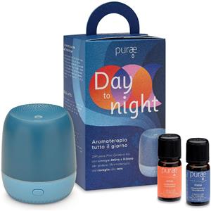 HP ITALIA Srl Purae Kit Aromaterapico Day To Night con Diffusore Mini a Ultrasuoni Blu e Azzurro, Sinergie Attiva e Rilassa