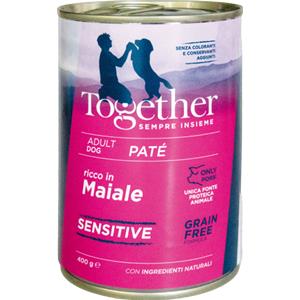 Together Patè Sensitive Grain Free - Alimento Umido per Cani Adulti con Gusto Maiale, 400 gr, Monoproteico e Senza Cereali