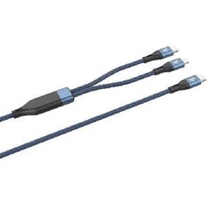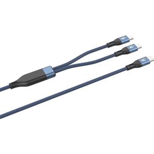 VulTech Cavo Smartphone CS-NCCL12BL Nylon Intrecciato Type-C to 2 Type-C e Lightning Blu 1,2m 5.0A 100W - PD 5A QC 3.0
