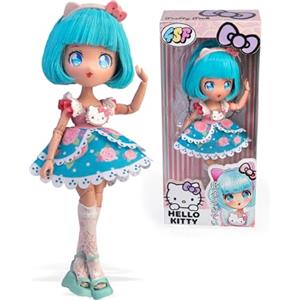 Famosa Hello Kitty Manga Doll Pretty Pink - Bambola Giapponese 19,5 cm con 15 Punti di Articolazione e Capelli Azzurri