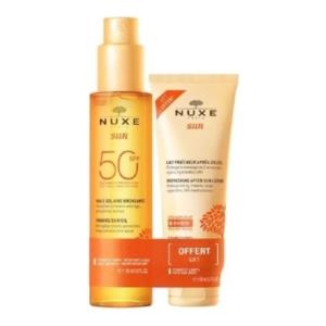 Nuxe Sun Olio Solare Abbronzante SPF50 150 ml Latte Doposole Idratante 100 ml per Viso e Corpo