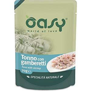 Oasy Specialità Naturale - Tonno con Gamberetti in Lattina 70gr per Gatti con Ingredienti Naturali e Alta Qualità in Alimenti Cani e Gatti
