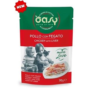 Oasy More Love Pollo con Fegato - Alimento Complementare Naturale per Gatti Adulti in Brodo di Cottura - 70g