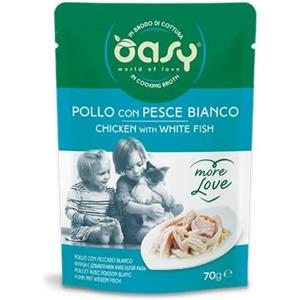 Oasy Cat More Love Pollo e Pesce Bianco - Alimento Naturale per Gatti Adulti in Vaschetta da 70g
