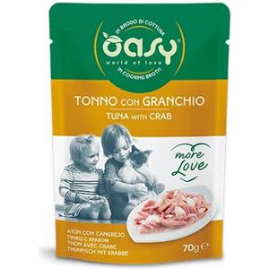 Oasy Cat More Love - Cibo Umido per Gatti con Tonno e Granchio, 70g, Senza OGM e Conservanti in Alimenti Cani e Gatti