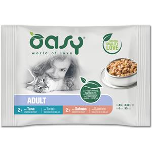 Oasy Gatto Bocconcini Multipack Adulto Tonno+Salmone Cf. (4X85) Gr