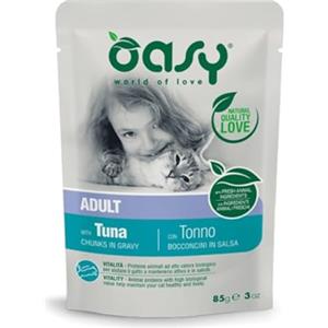 Oasy Cat Bocconcini in Salsa al Tonno - Cibo Umido Completo per Gatti Adulti - 85 gr - Confezione da 12 in Alimenti Cani e Gatti